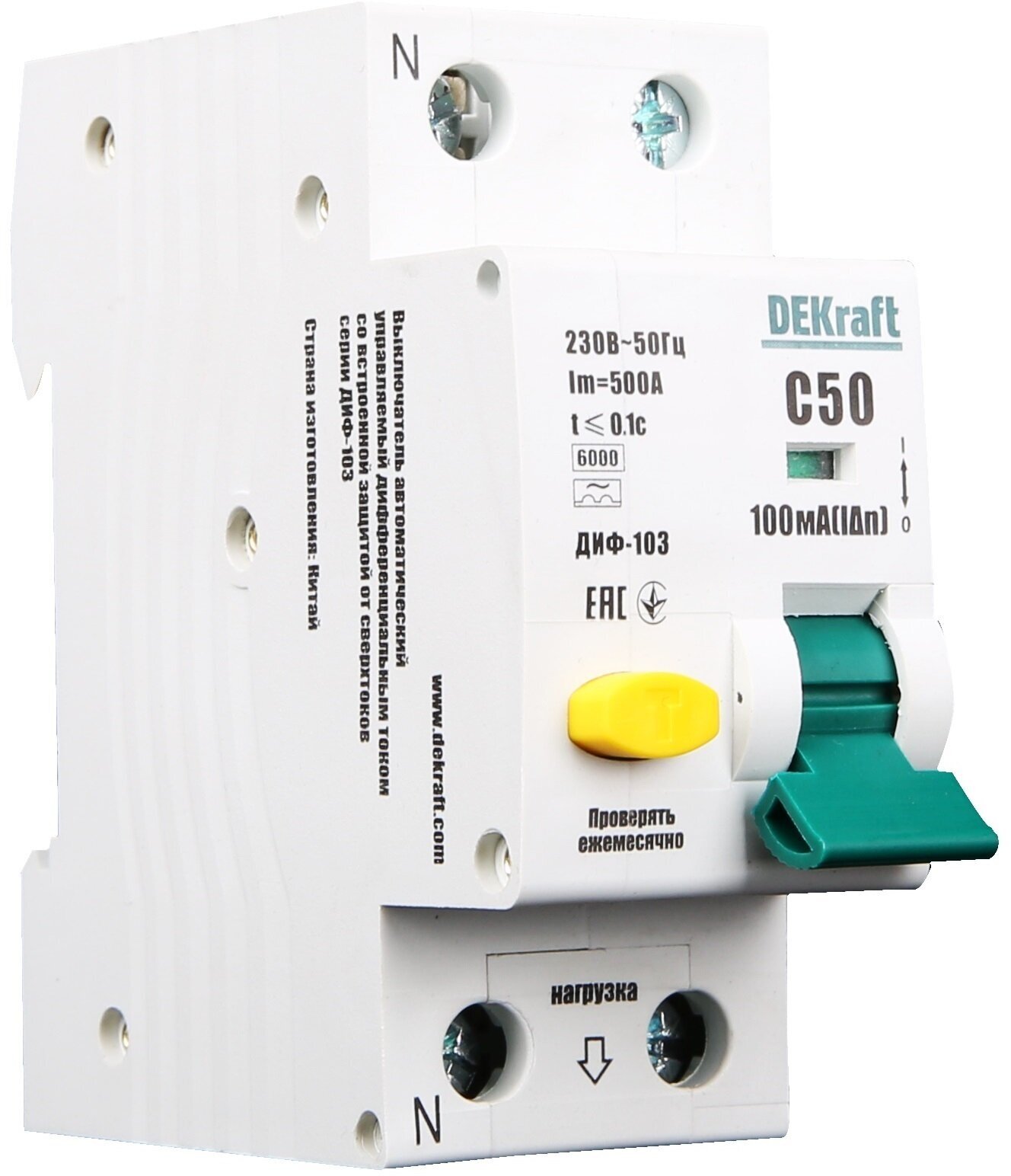Автомат дифференциальный Dekraft ДИФ-103 40А 30 мА 1P+N тип АС 6 кА (16208DEK) информация: