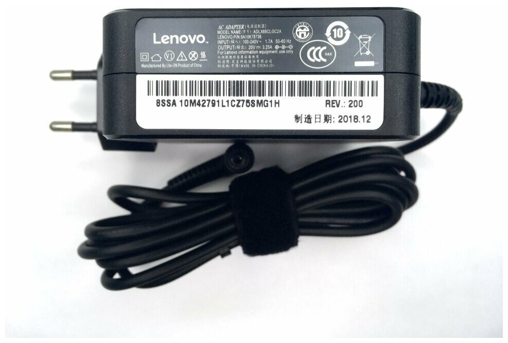 Блок питания для ноутбуков Lenovo 20V 3.25A 65W прямоугольный разъем