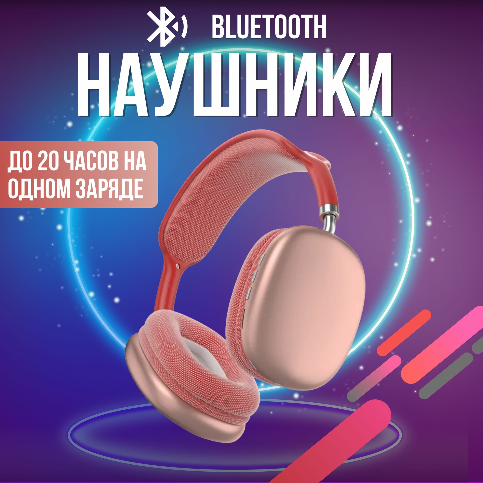 10 цен на Большие беспроводные наушники с микрофоном и блютуз / Наушники беспроводные накладные Bluetooth, красный