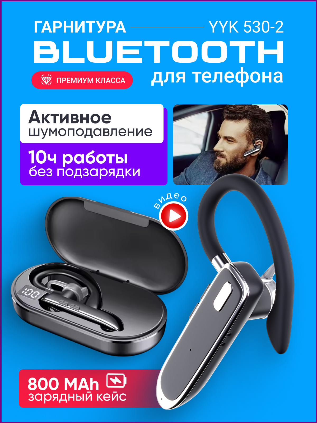 Отзывы на Bluetooth гарнитура Премиум класса YYK-530-2 TAYMLUX, беспроводная блютуз 5.1 для телефона, наушник с микрофоном на ухо с зарядным кейсом