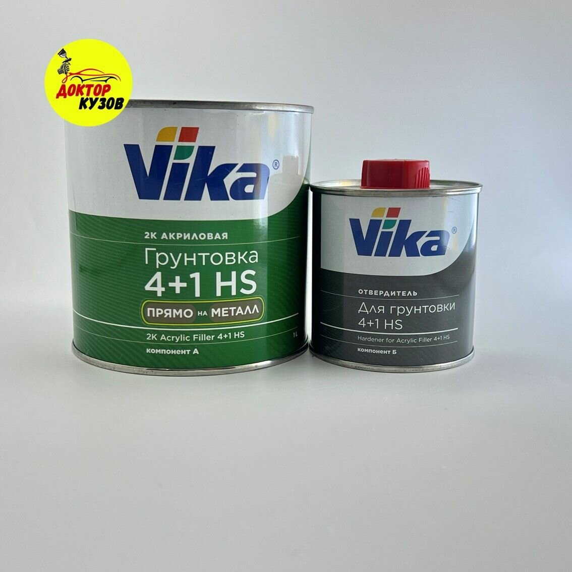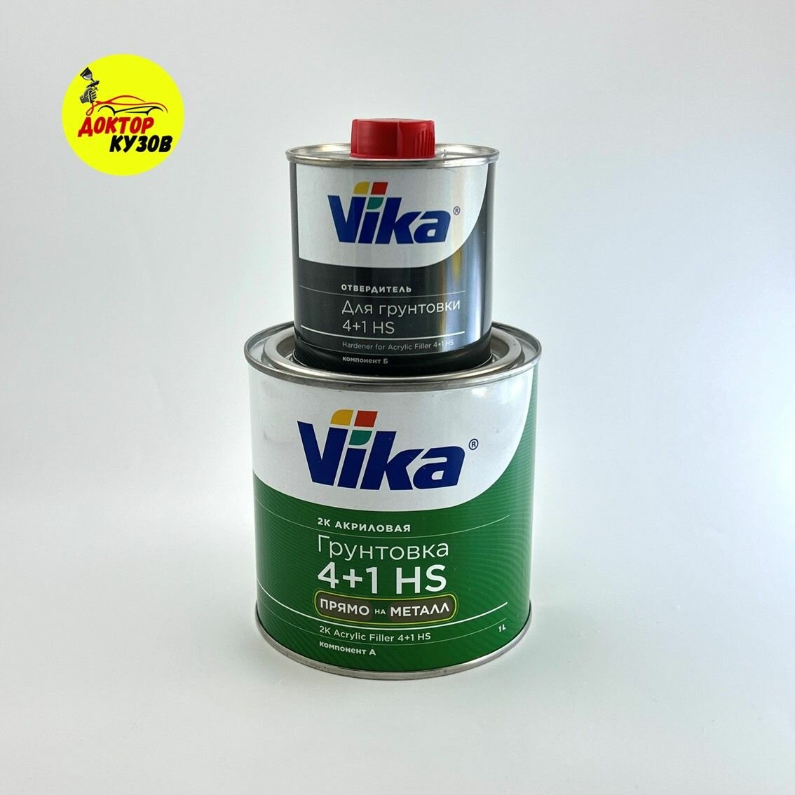 Грунт-наполнитель акриловый Vika 4+1 HS "Прямо на металл", серый, 1.2 кг в комплекте с отвердителем информация: