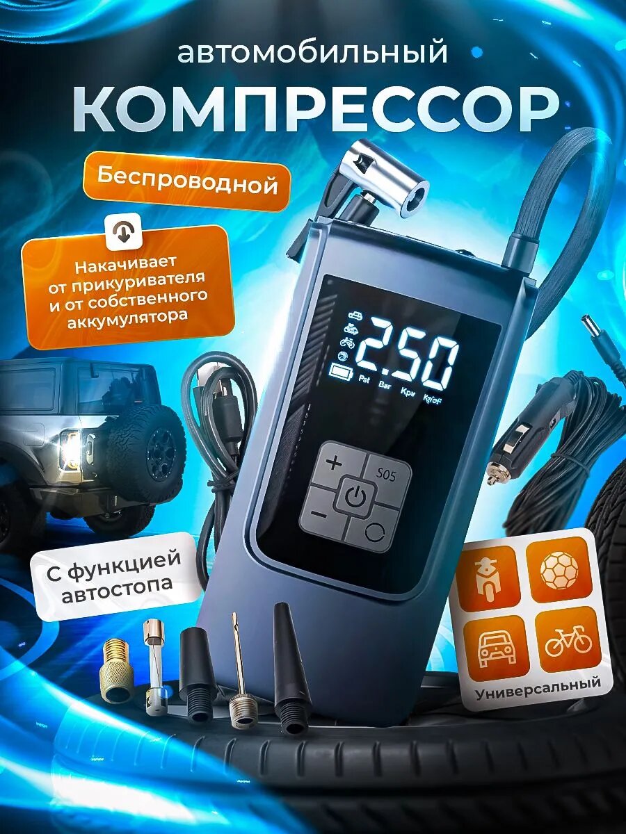 10 цен на Компрессор Автомобильный Беспроводной Насос с функцией автостопа.