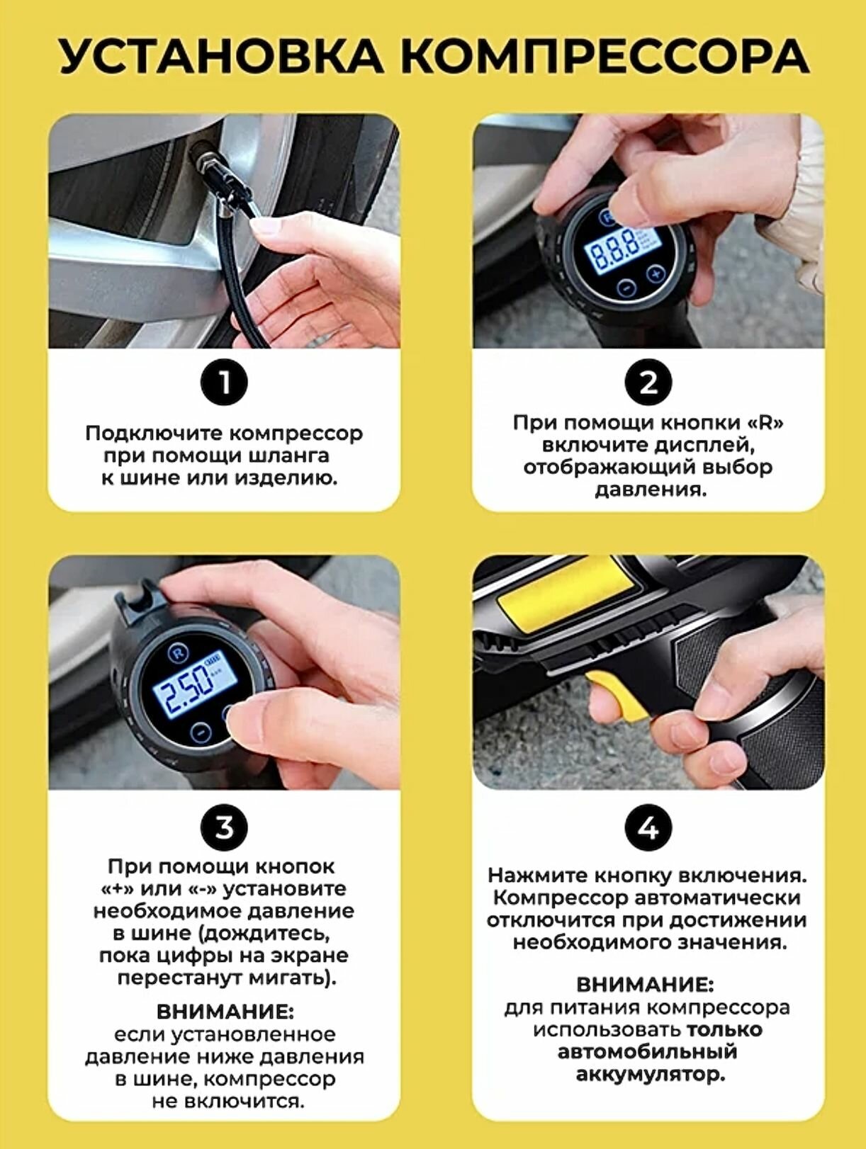 Компрессор автомобильный проводной от прикуривателя портативный / Насос электрический поршневой информация: