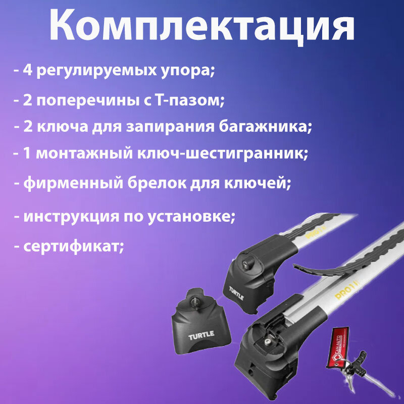 | Подробная комплектация | *4 опоры *2 металлические дуги в черном пластике прямоугольного сечения *комплект крепежа *Инструкция *Сертификат |