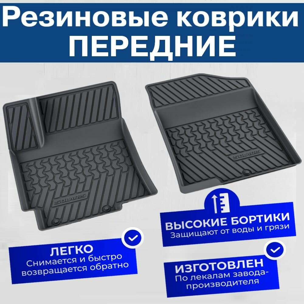 Коврики резиновые передние для Хендай Солярис 1 / Hyundai Solaris 1 (2010-2017) информация: