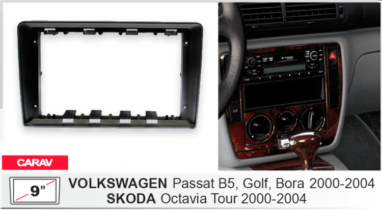 Carav 22-1829 | 9" переходная рамка Volkswagen Passat (B5) 96-05, Bora 98-06, Golf IV 98-03, Lupo 1998-05, Polo 99-09 / SKODA Fabia 99-03, Octavia 96-04, SuperB 02-08, SEAT Arosa 97-04, Ibiza 02-08 информация: