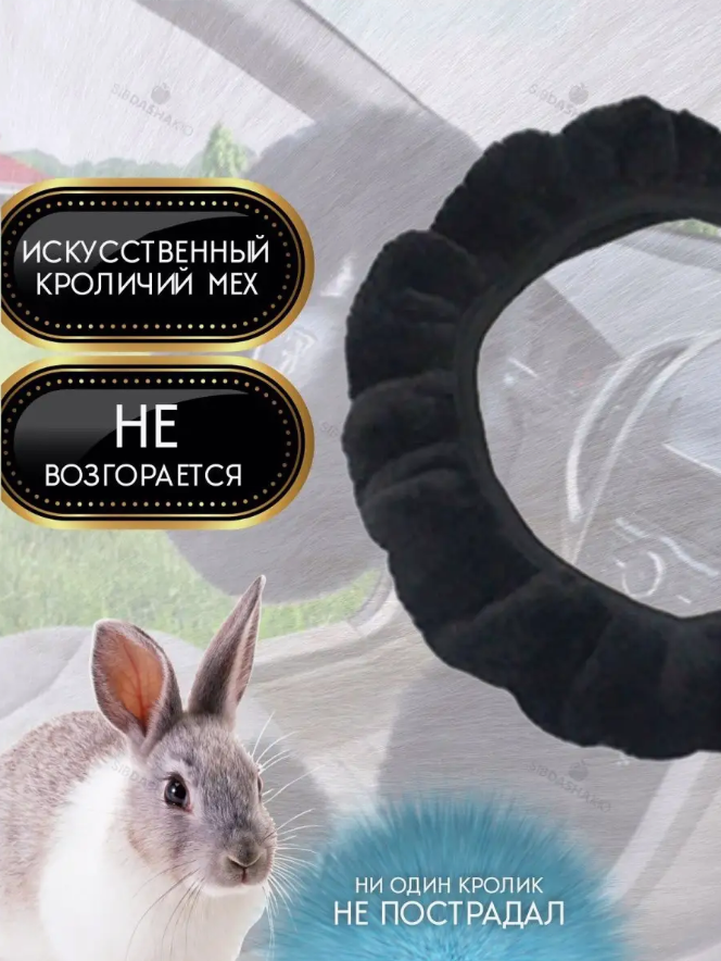 10 цен на Оплетка на руль меховая универсальная 37-39 см, цвет черный