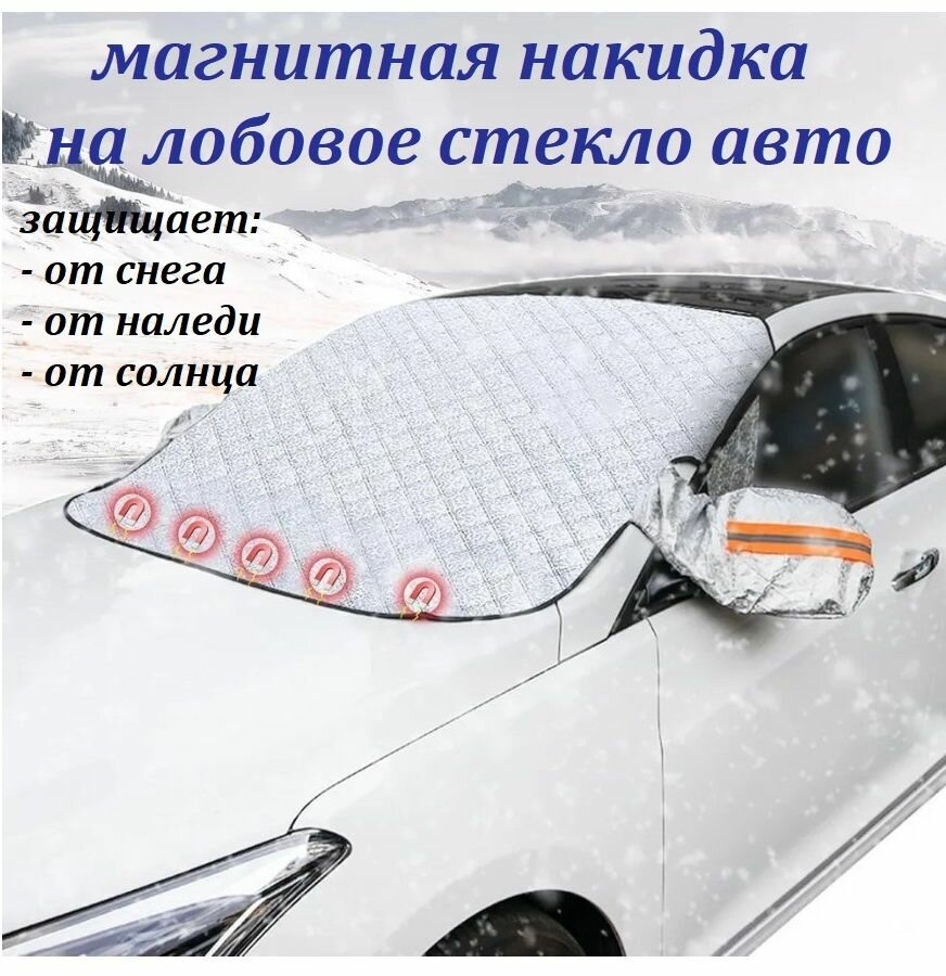 Магнитная защитная накидка на лобовое стекло автомобиля / Всесезонный чехол на стекло машины С ушами для боковых зеркал информация: