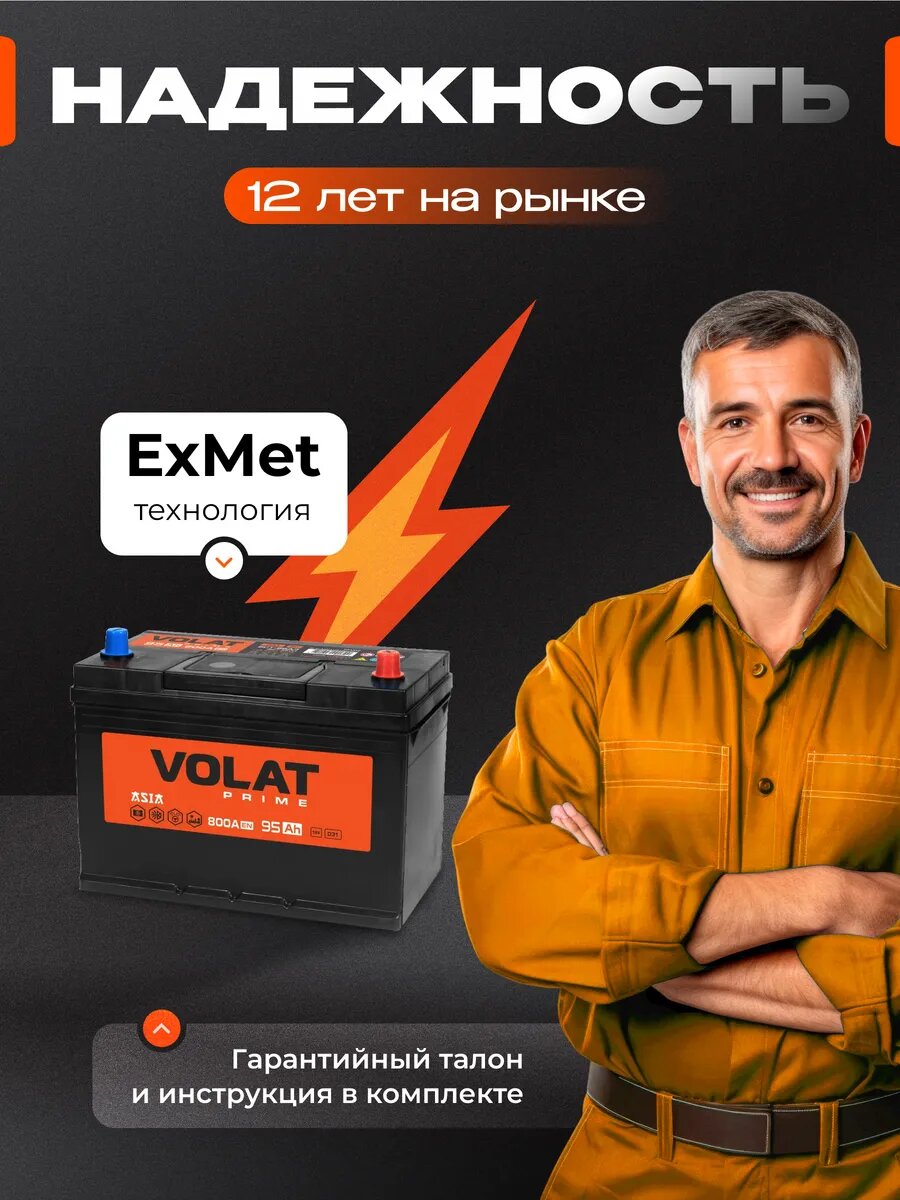 Отзывы на Аккумулятор автомобильный VOLAT Prime Asia (нижний борт) 95 Ah 800 A обратная полярность 303x175x225