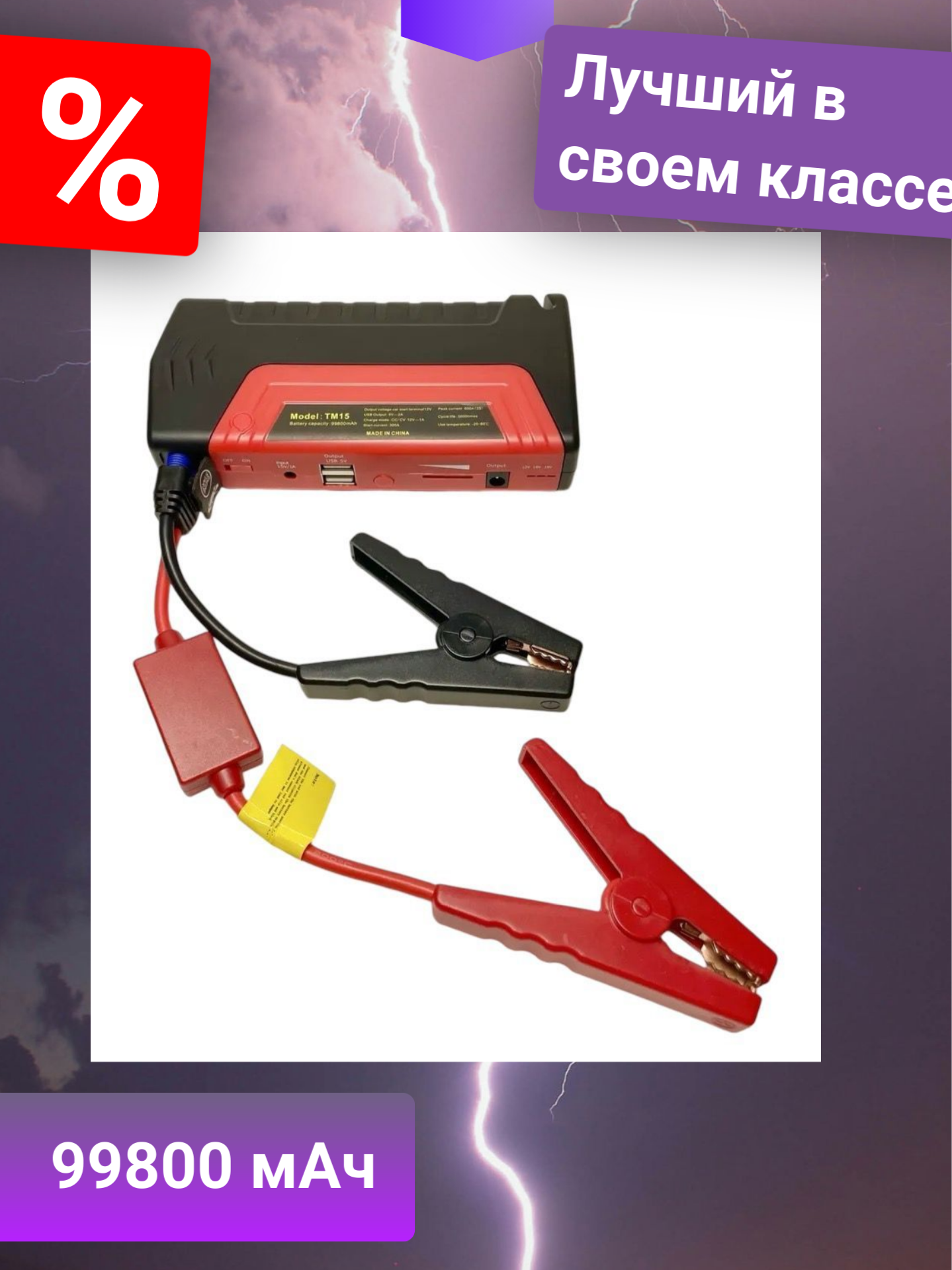 Портативное пуско-зарядное Led-устройство для автомобиля 600А, 98000мАч информация:
