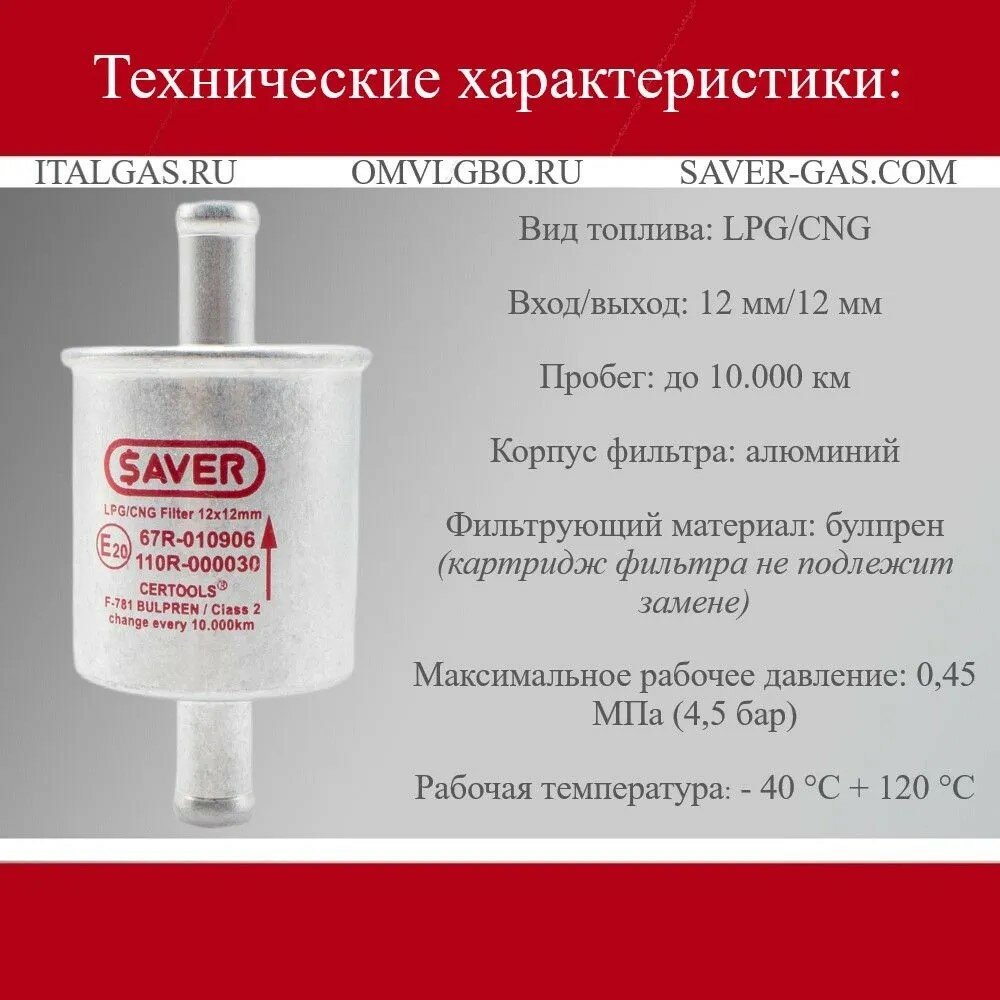 Фильтр газовый паровой фазы SAVER 12*12 для ГБО (Bulpren) информация: