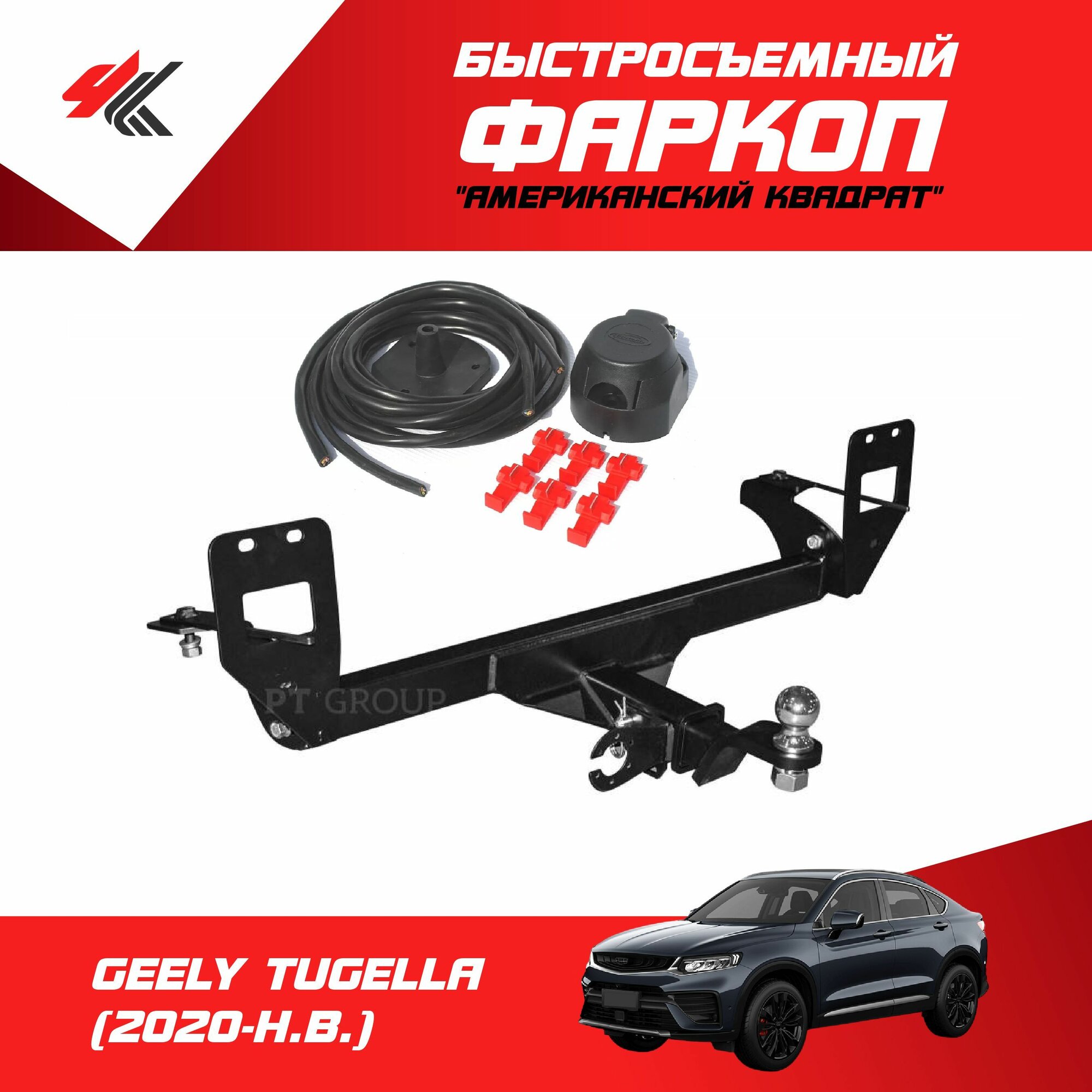 Фаркоп джили тугелла (2020-Н.В.) "PT-Group" + электрика "Энви" информация: