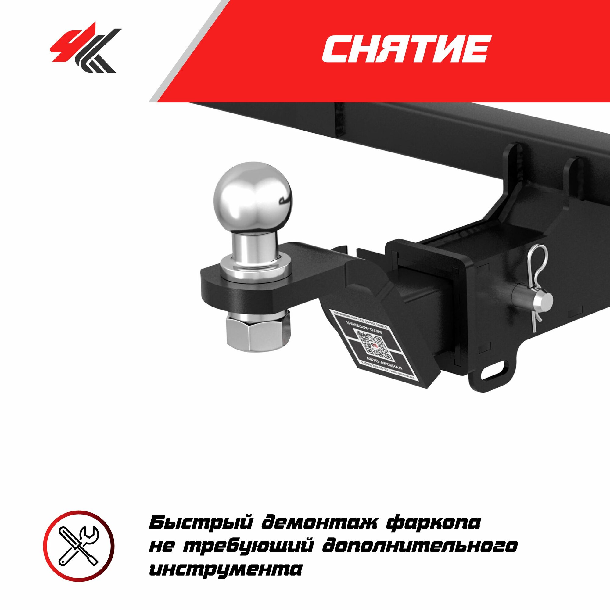 Автомобильный буксирный фаркоп на Toyota Land Cruiser 200 (кроме Executive, TRD) с 2007 г. в. со съемным шаром тип F, аксессуарами и сертификатом для авто