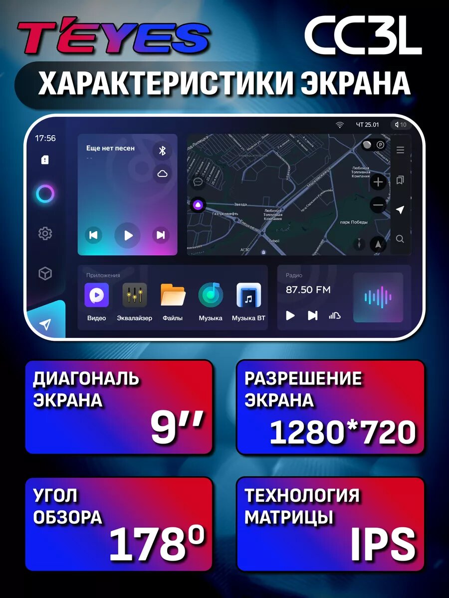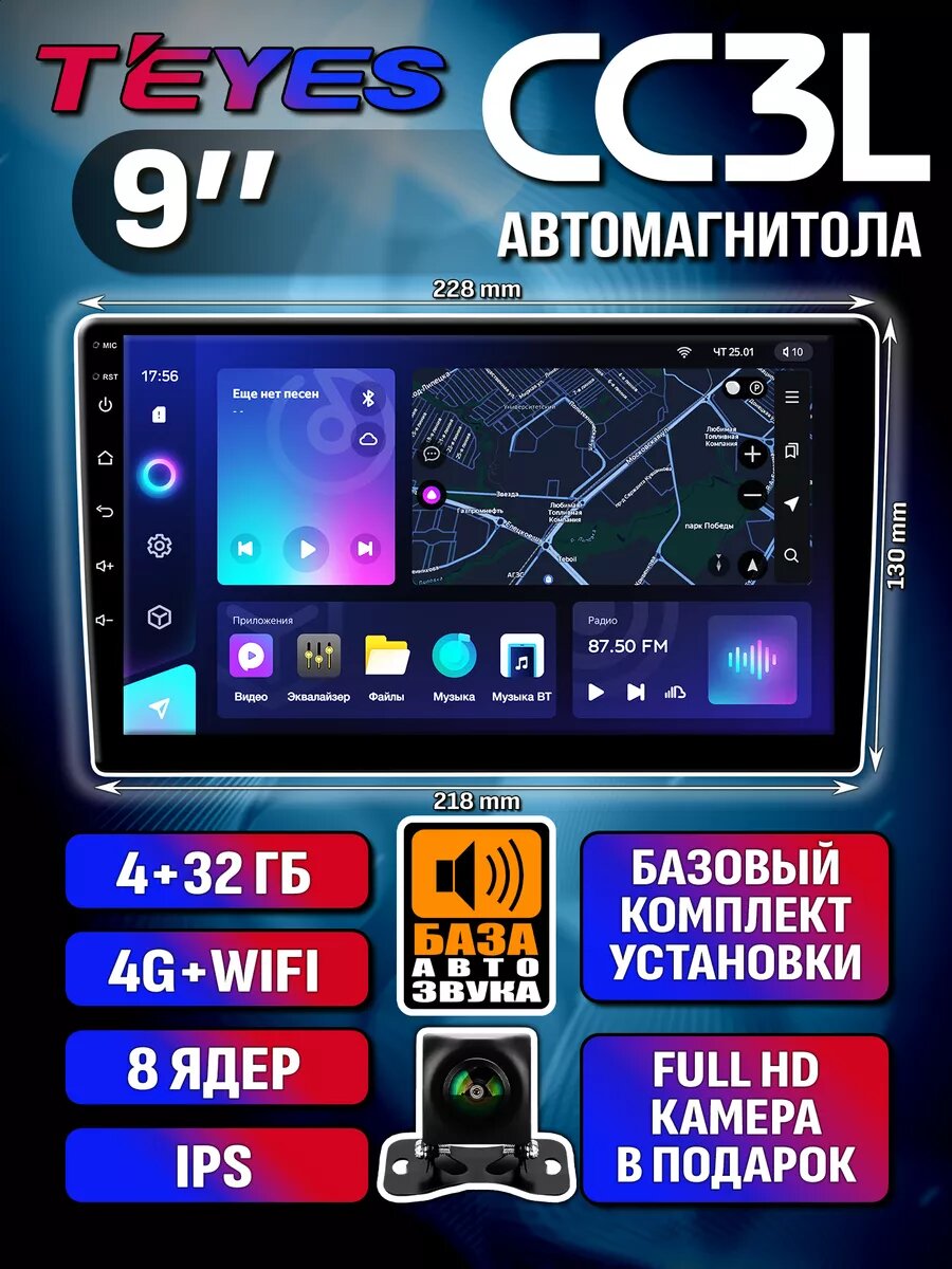 Автомагнитола Teyes CC3L 9" 4-32 ГБ для всех автомобилей информация: