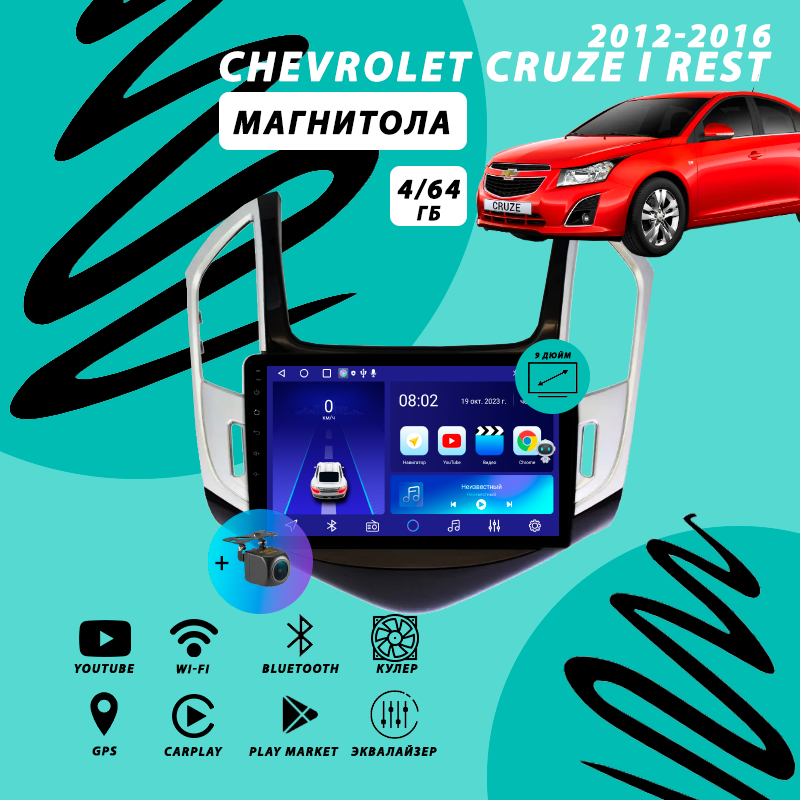 Магнитола Chevrolet Cruze (2012-2016) 4Гб+64Гб/Android/Carplay/кулер/Wi-Fi/Bluetooth/2din/штатная магнитола информация: