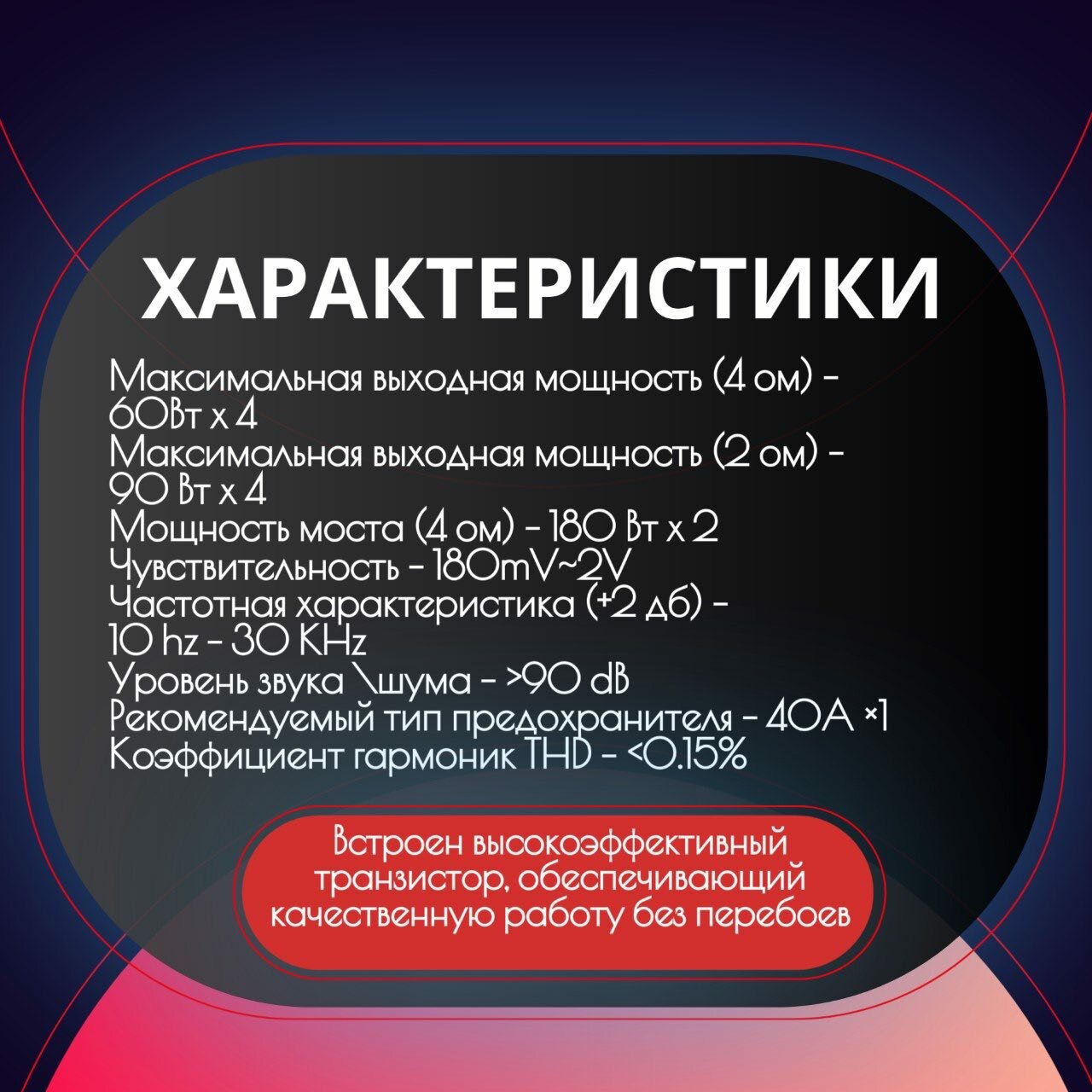 Автомобильный усилитель 1800W / 4-х канальный усилитель звука информация: