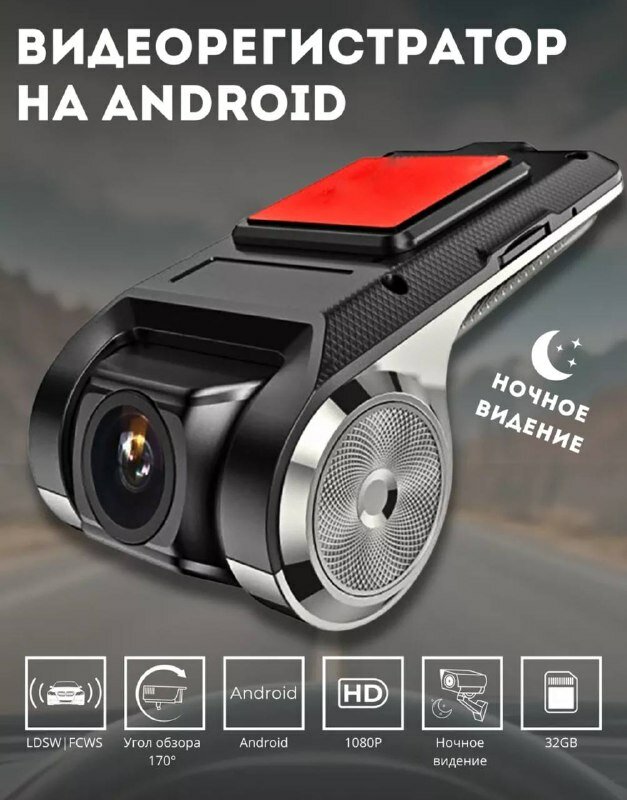Видеорегистратор для магнитол на Android с режимом ночного видения, 1920x1080, угол обзора 170, адас регистратор информация: