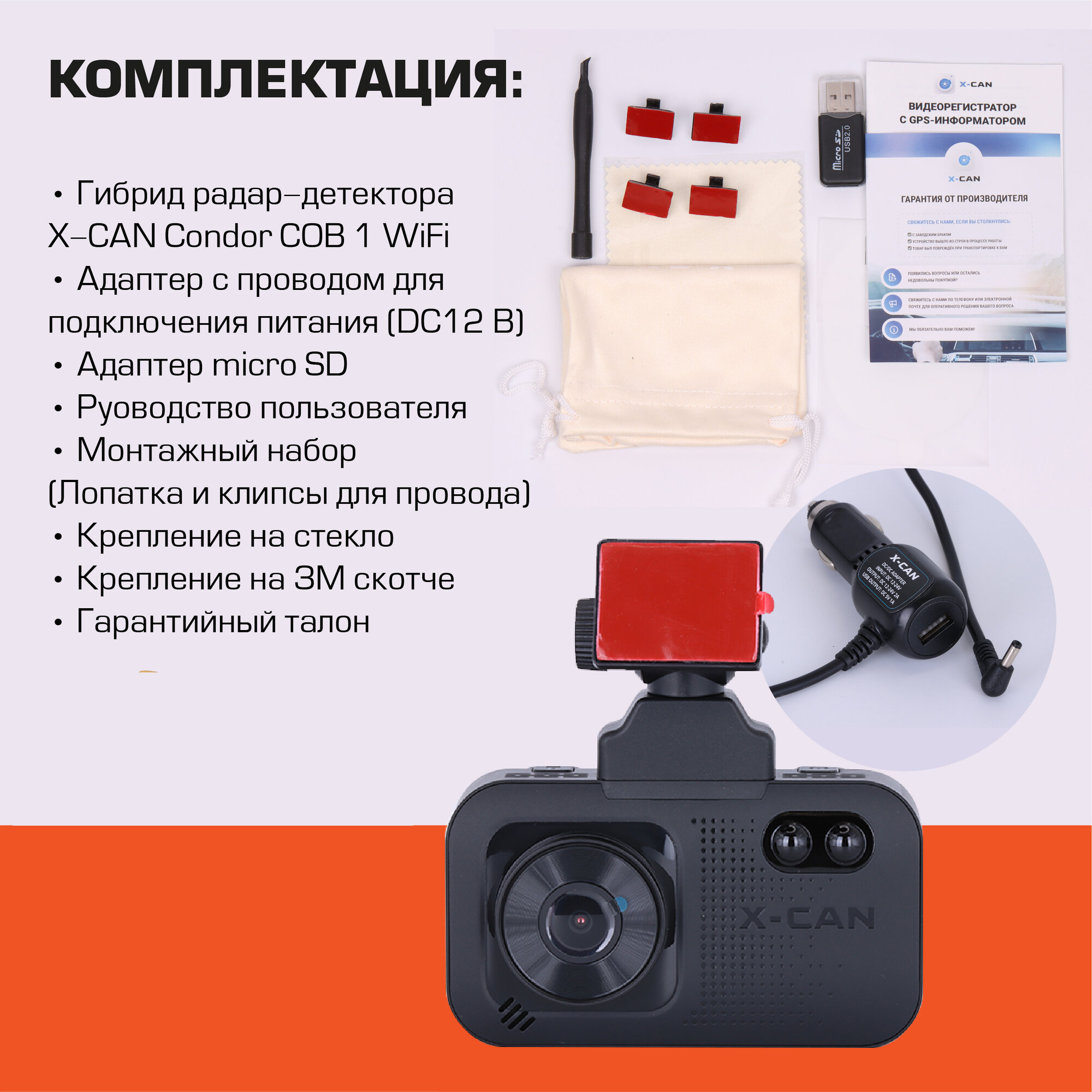 X-CAN Condor COB1 WiFi / Автомобильный видеорегистратор с радар-детектором / Видеорегистратор с радаром / Комбо устройство / 3 в 1 / Гибрид информация: