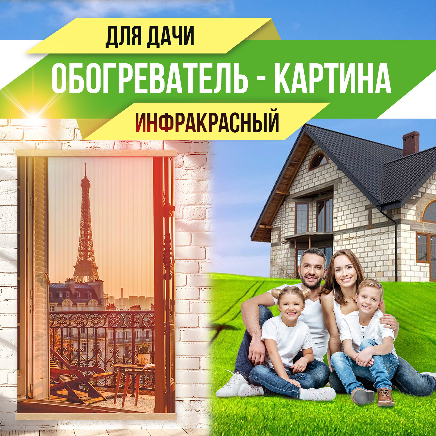Обогреватель электрический инфракрасный настенный Totmart / Картина интерьерная Окно для дома дачи 400 Вт информация: