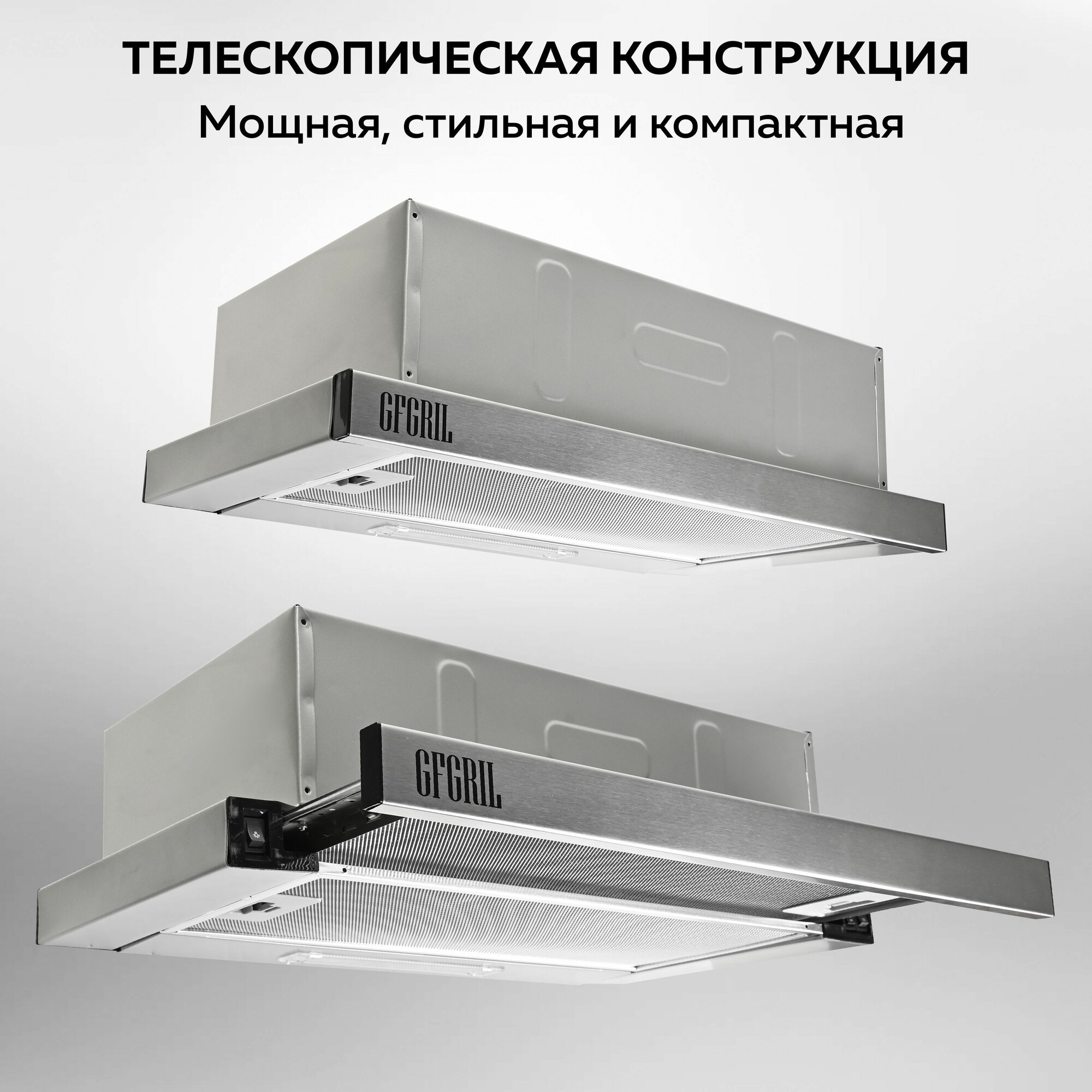 GFGRIL Вытяжка кухонная встраиваемая GF-HD100TIN, 60 см, 450 м3/ч, 140 Вт, 3 скорости, нержавейка информация: