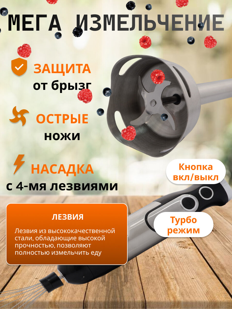 10 цен на Погружной блендер 6 в 1/измельчитель/миксер/домашний, кулинарный, блендер для смузи, коктейлей, мерный стакан 0.6л,1500Вт, черный