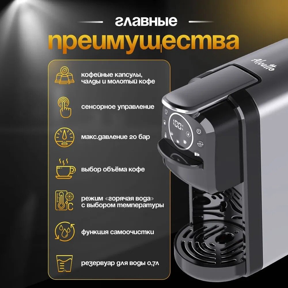 10 цен на Кофемашина универсальная (капсульная/рожковая) Alvatto Uno Pro 4-в-1 / metallic