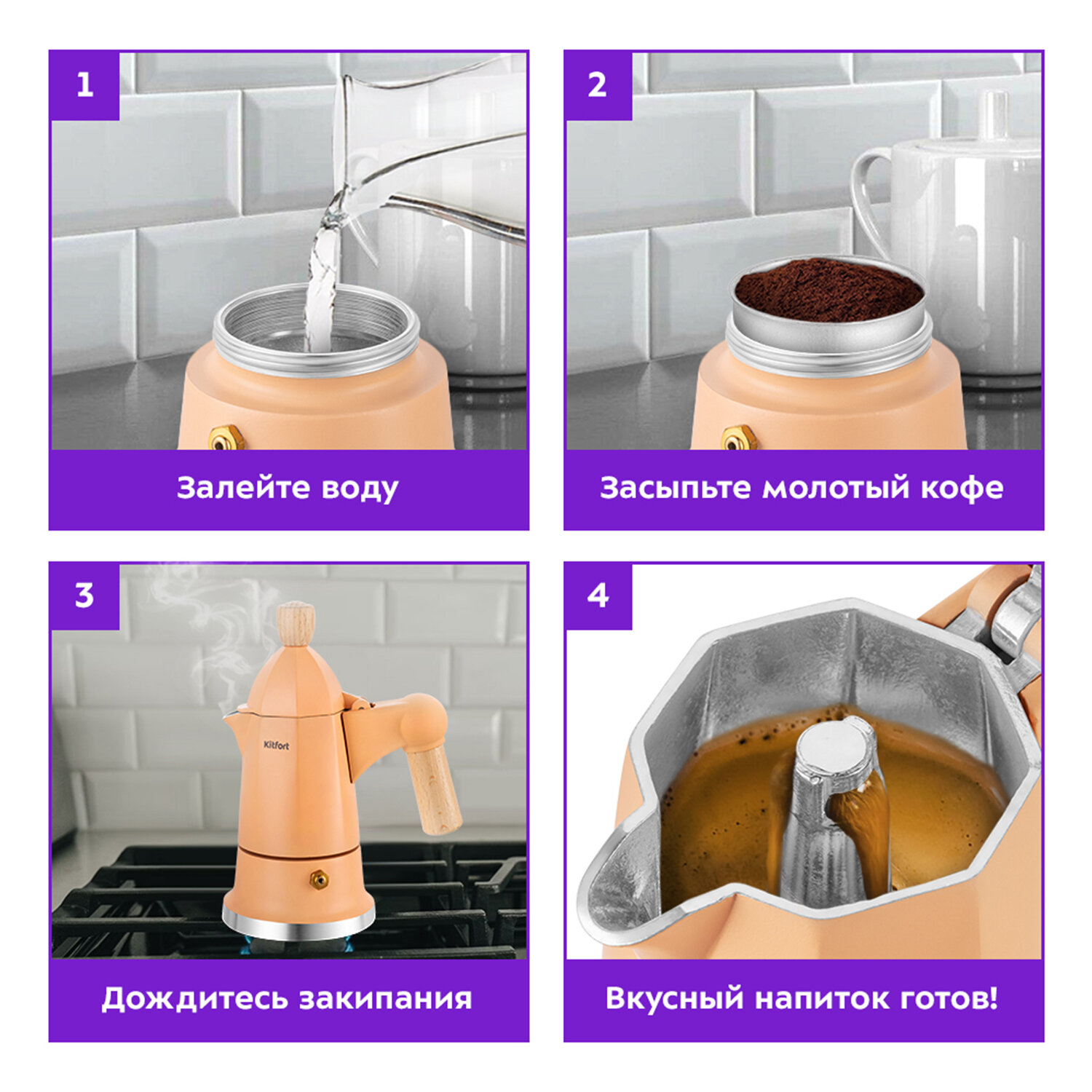10 цен на Кофеварка гейзерная КТ-7152-2 персиковый