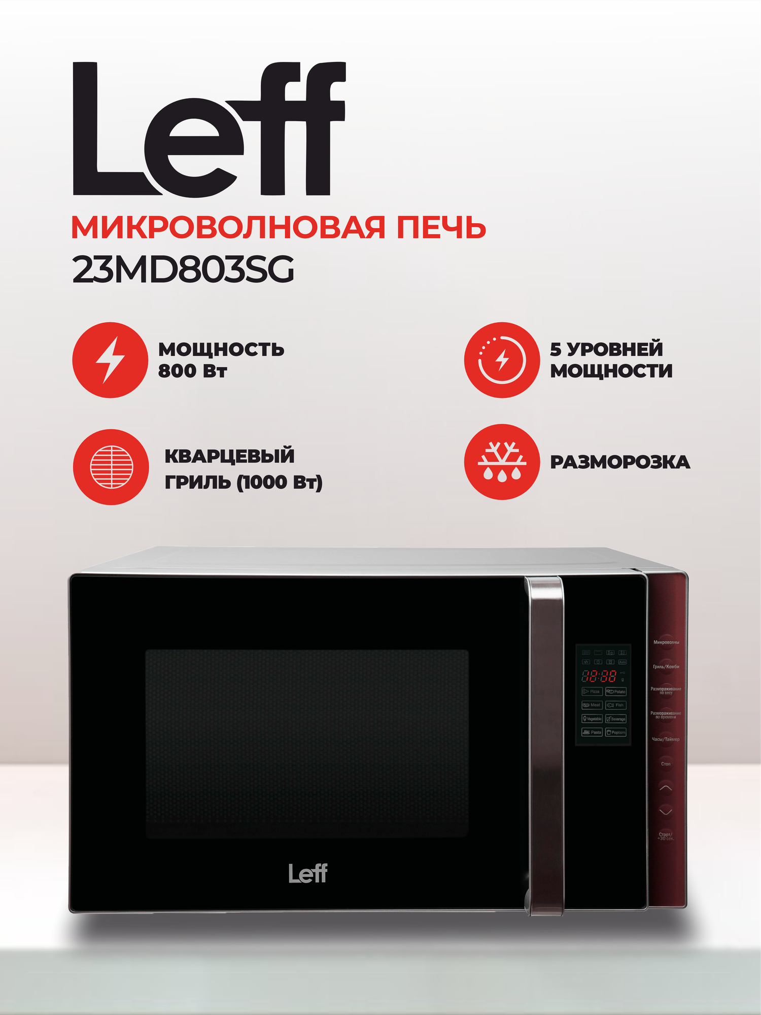 10 цен на Микроволновая печь Leff 23MD803SG, 23л, 800 Вт, гриль, черный