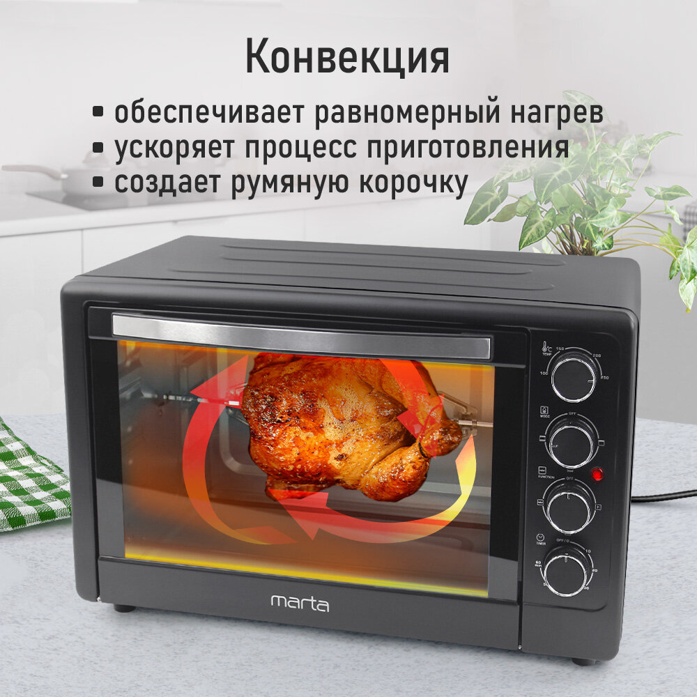 Мини-печь MARTA MT-EO4288A (30 литров, сенсор+конвекция+шашлычница+вертел) черный жемчуг
