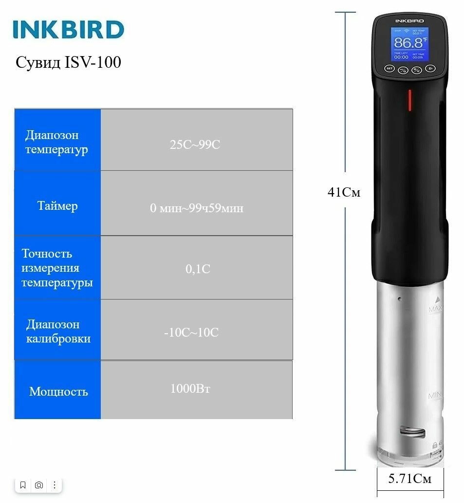 Сувид погружной INKBIRD ISV-100W, с управлением по WI-FI информация: