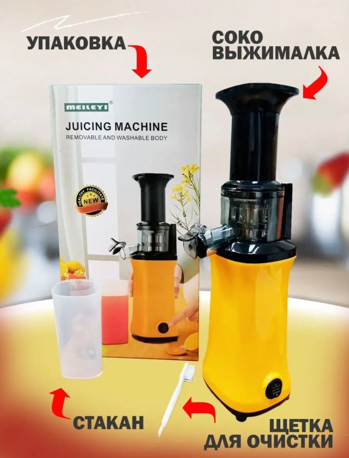 | Подробная комплектация | соковыжималка, USB, стакан, щетка для очистки. |