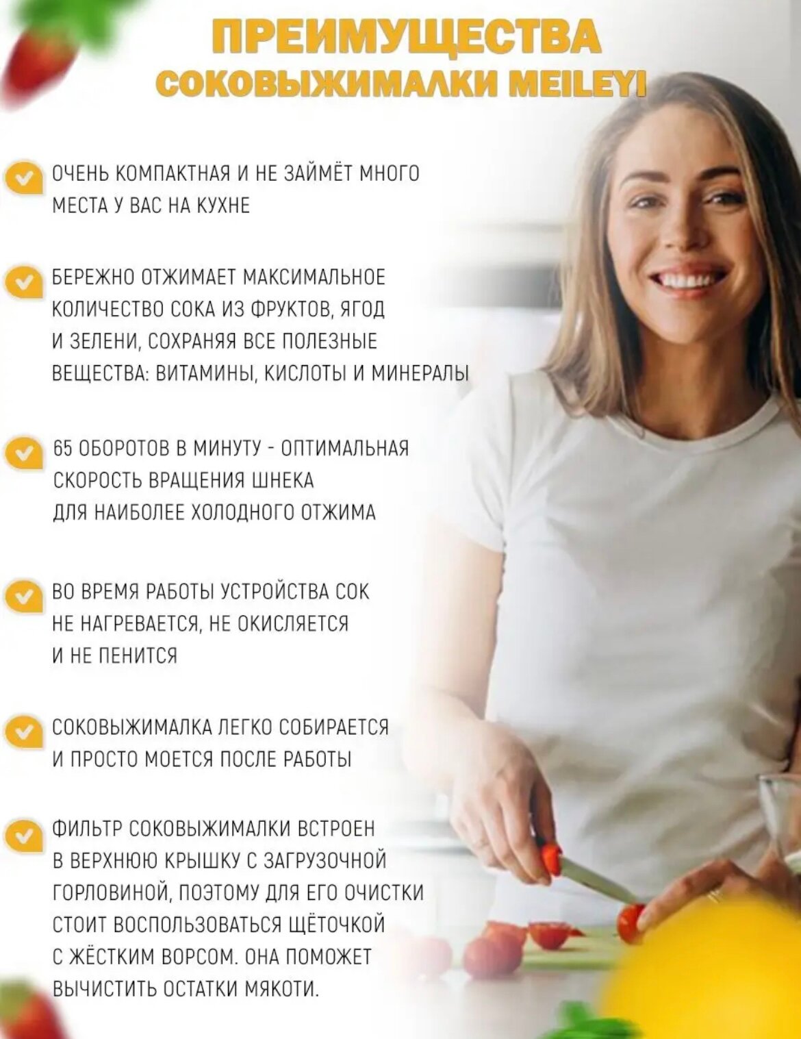 | Подробная комплектация | соковыжималка, USB, стакан, щетка для очистки. |