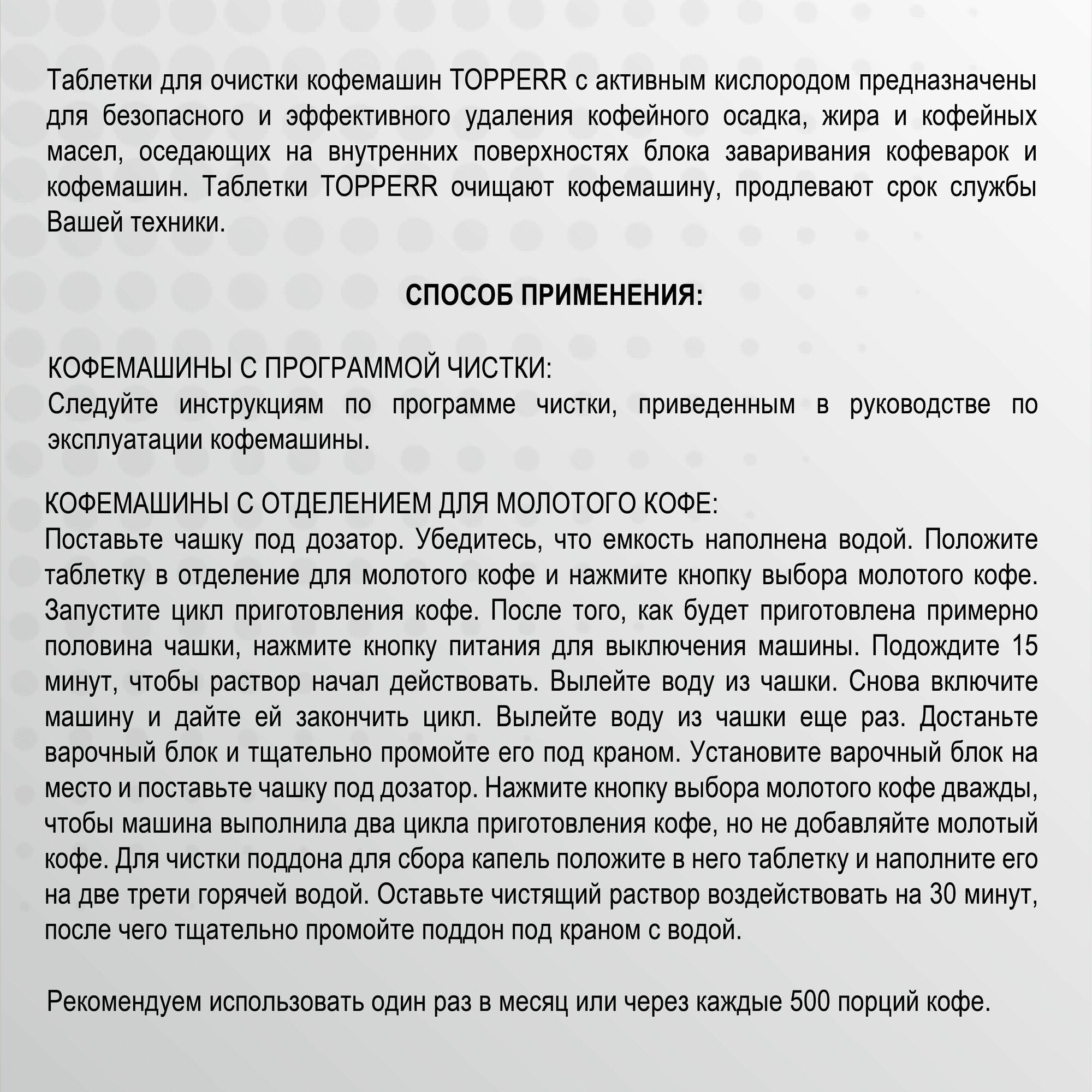 Таблетки для очистки кофемашин TOPPERR 3037 10 штук, белый информация: