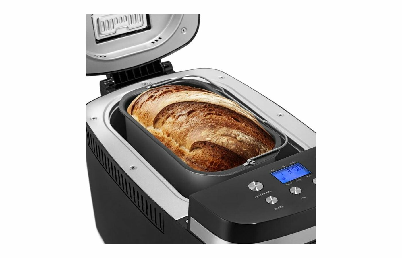 | Программы | безглютеновая выпечка / бездрожжевая выпечка / бородинский хлеб / варенье / замес теста / йогурт / кекс / пшеничный хлеб / французский багет / хлеб из муки грубого помола |