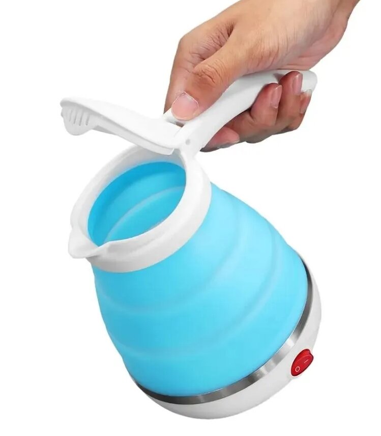 Электрический чайник силиконовый, складной, дорожный чайник голубой информация: