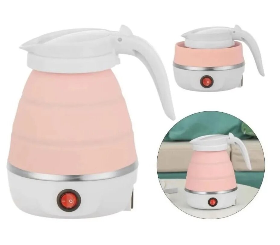 Электрический чайник силиконовый, складной, дорожный чайник розовый информация: