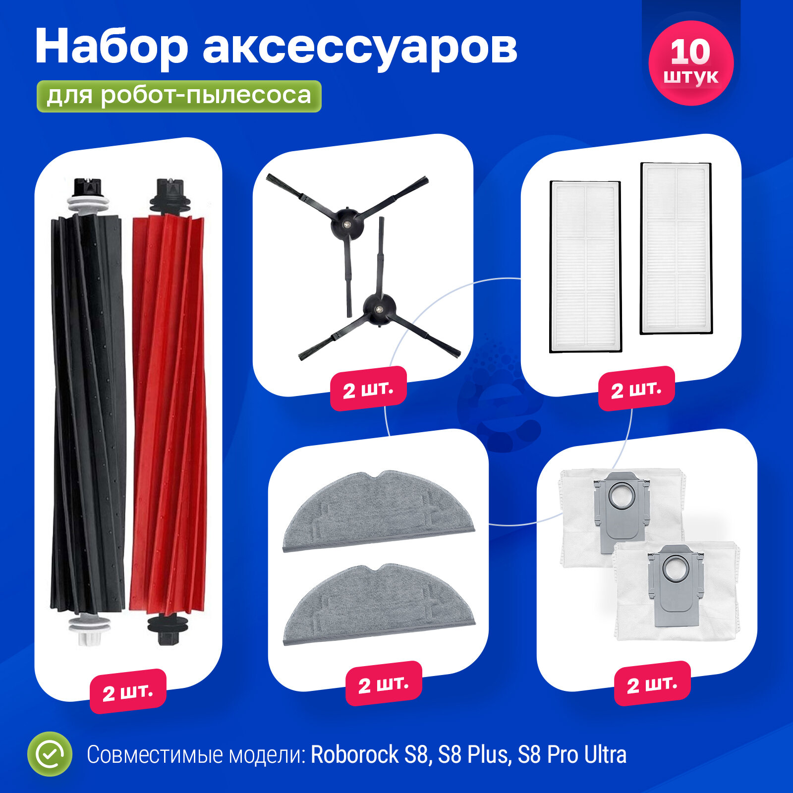 10 цен на Комплект фильтров, тряпок, мешков и щеток для робота пылесоса Xiaomi, Roborock S8, S8 Plus, S8 Pro Ultra (Black) - 10 шт