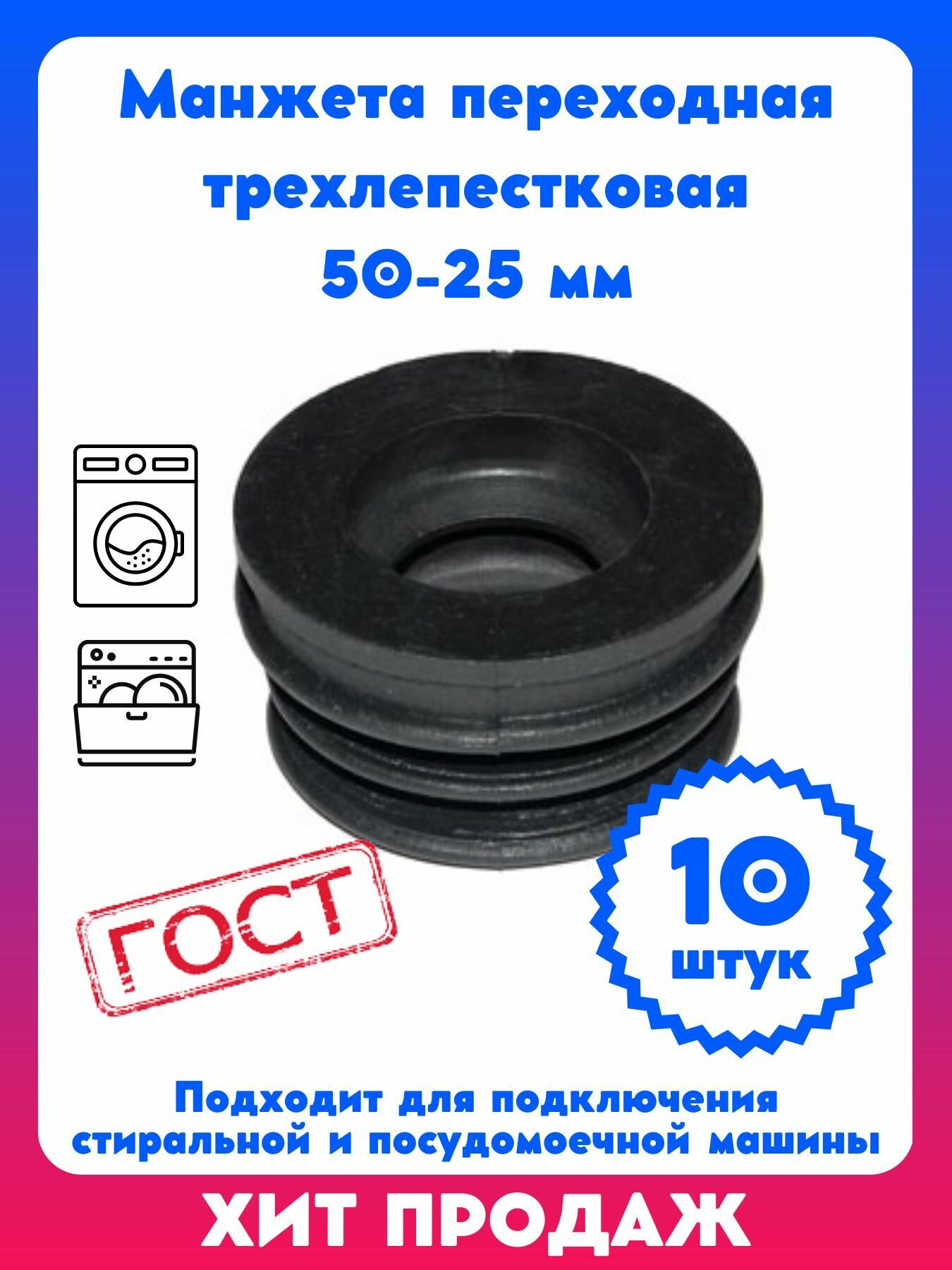 Манжета переходная трехлепестковая 25-50 мм (10 шт) для стиральной и посудомоечной машины информация: