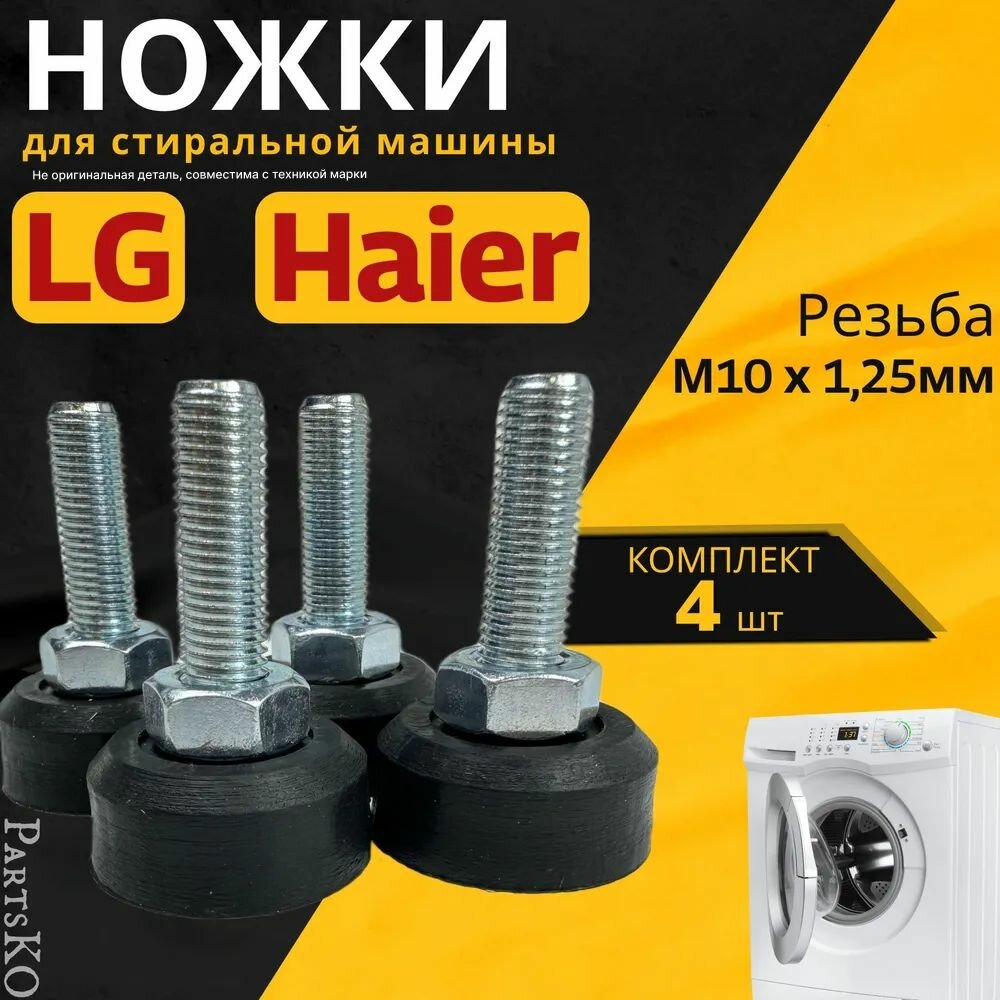 Ножки для стиральной машины LG, Haier. Резьба М10 / Высота 50 мм. Черного цвета. Антивибрационные опоры для СМА. Универсальная запчасть. Комплект 4 шт. информация: