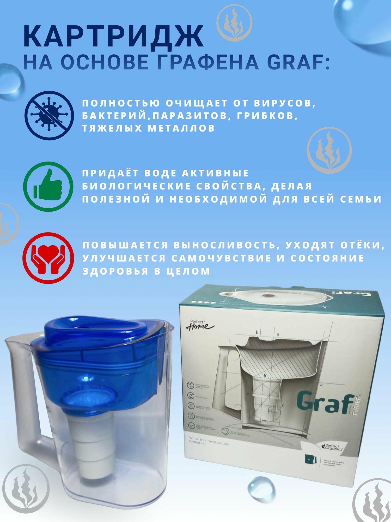 Отзывы на Кувшин для воды Perfect Organics "GRAF" с фильтром, на основе графена, сменный картридж, синий