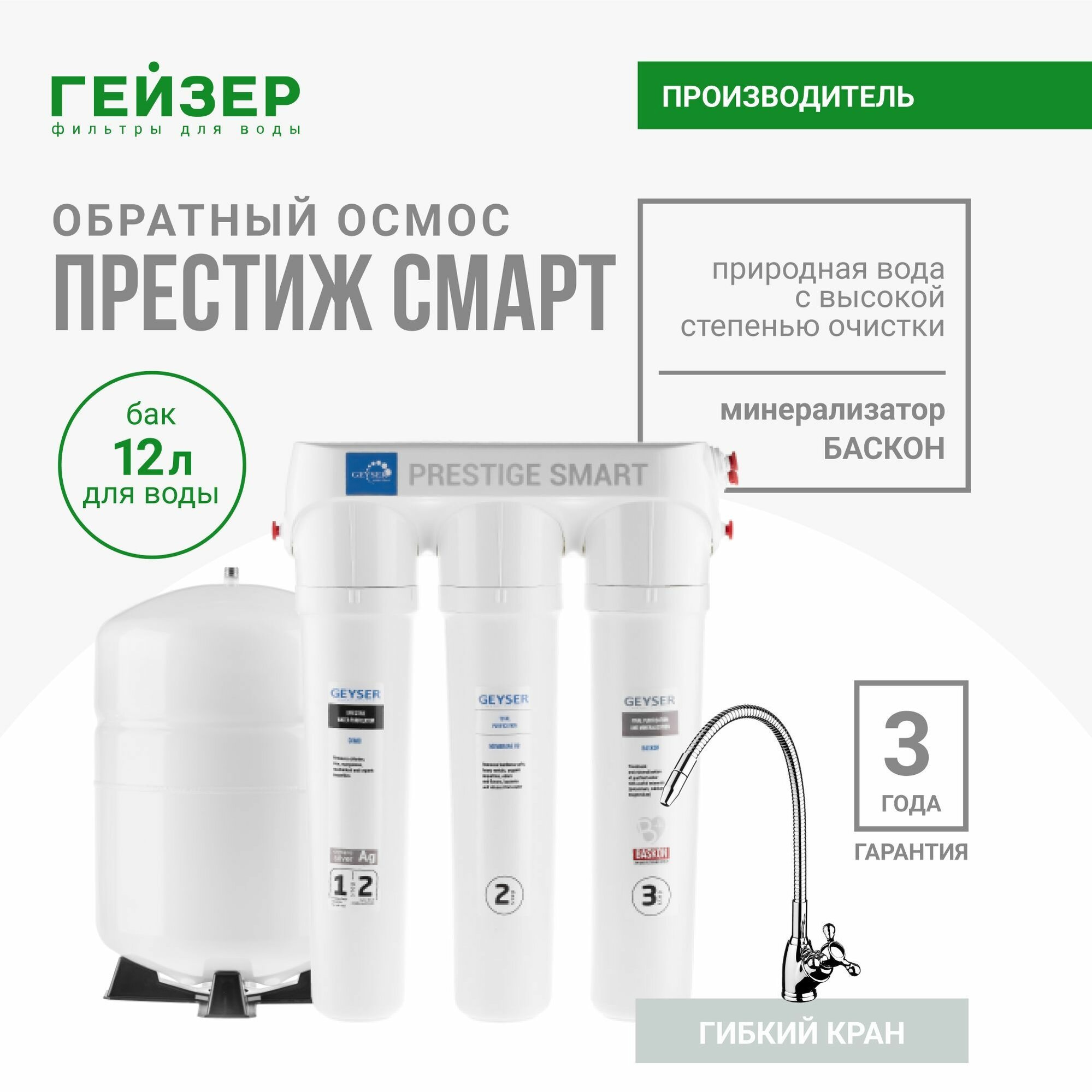 10 цен на Компактный фильтр обратного осмоса с краном и минерализатором Гейзер Престиж смарт - Т, высшая степень очистки воды на вашей кухне, 20059