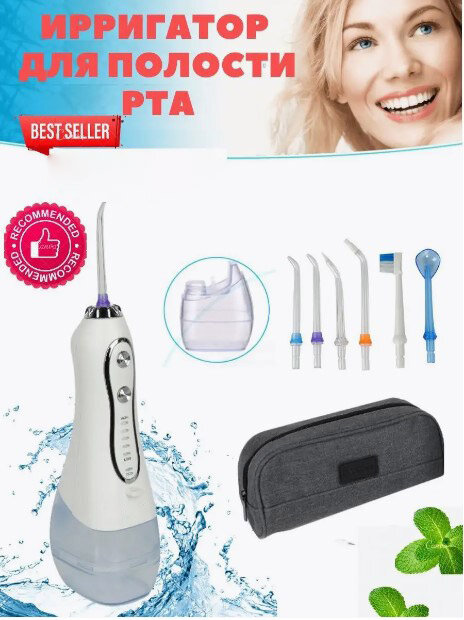 Отзывы на Ирригатор для полости рта портативный/для зубов, 6 сменных насадок, 5 режимов для чистки зубов и брекетов языка импульсивный ортодонтический/с чехлом