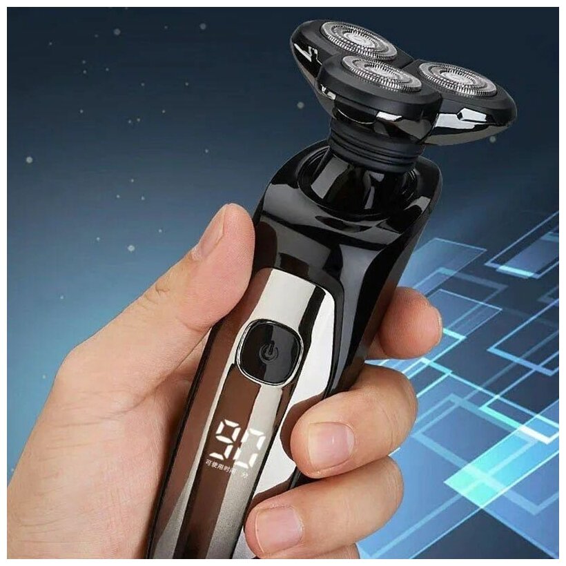Электробритва, электробритва мужская, электробритва для лица, аккумуляторная, 3 бреющих элемента, дисплей