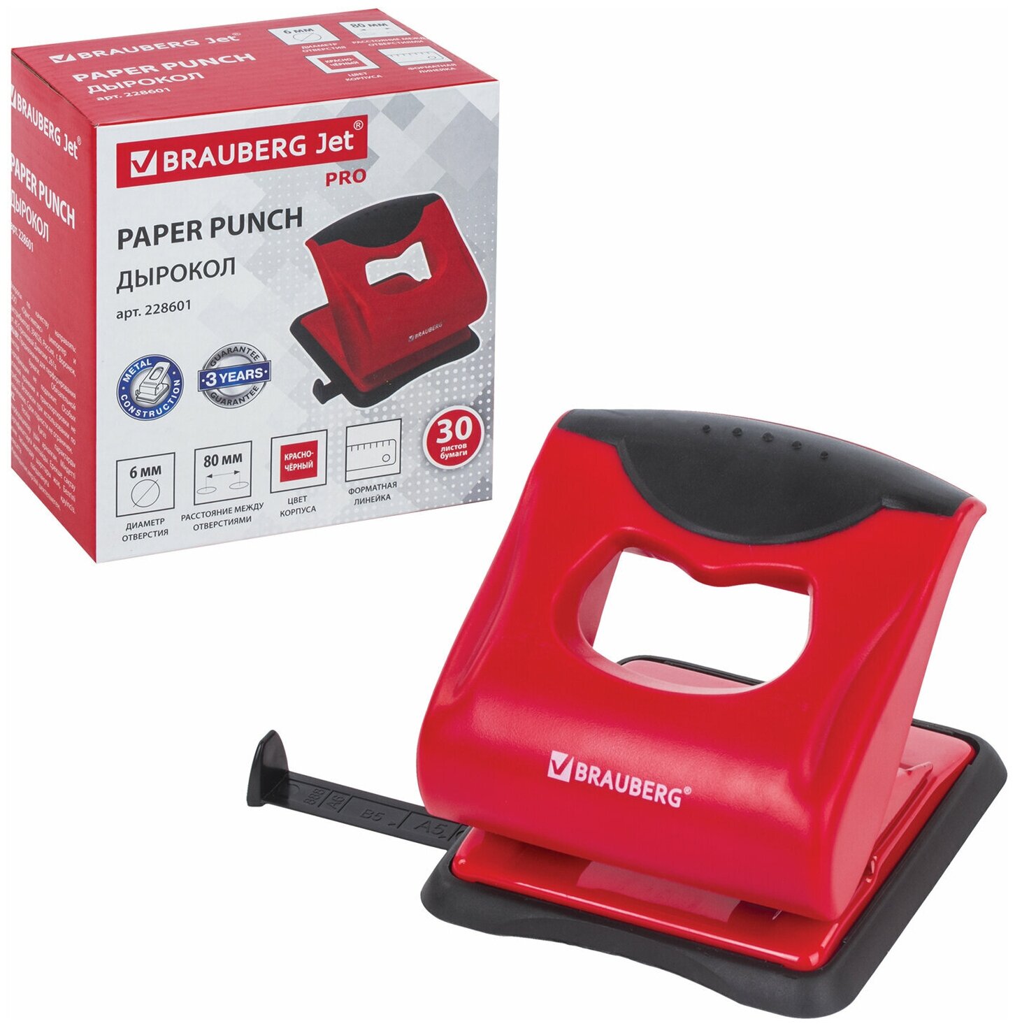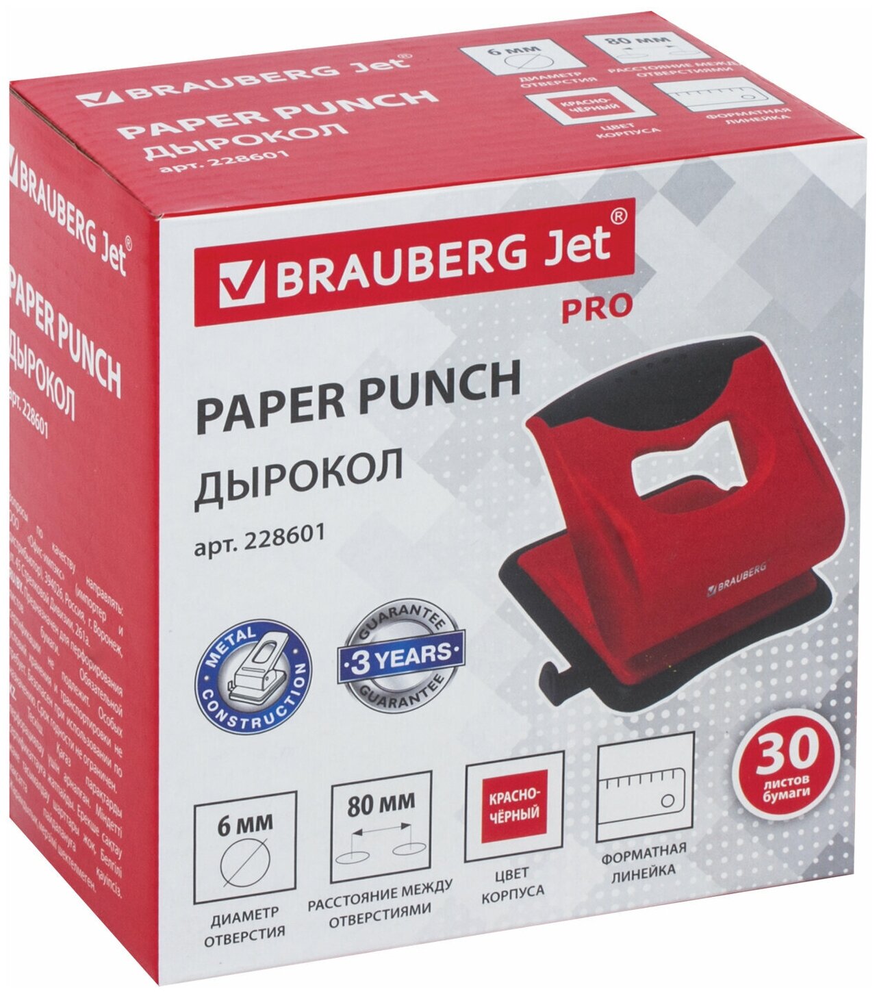 Дырокол BRAUBERG "JET PRO", до 30 листов, красно-черный, 228601, 1шт в компл. информация: