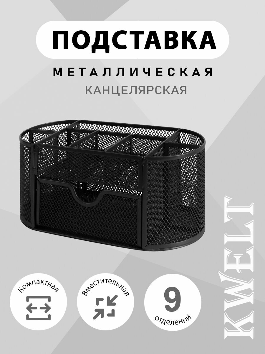 Подставка " KWELT " 9 отделений (1 выдвижное), металлическая, сетчатая, черная, картонная упаковка 22,5*11*11см информация: