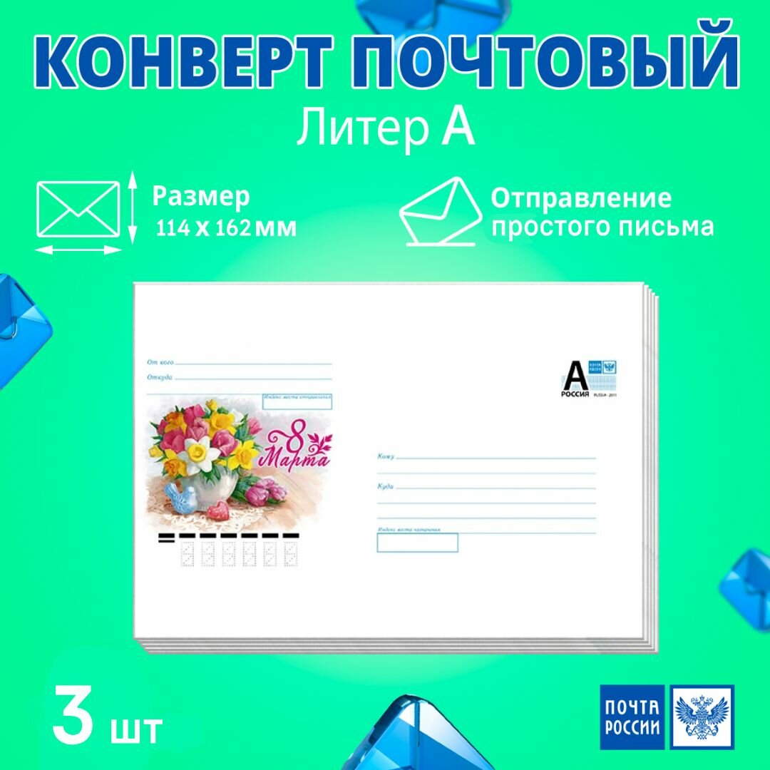 10 цен на Конверт (3 штуки) с маркой почтовый маркированный литер А, 114х162 мм