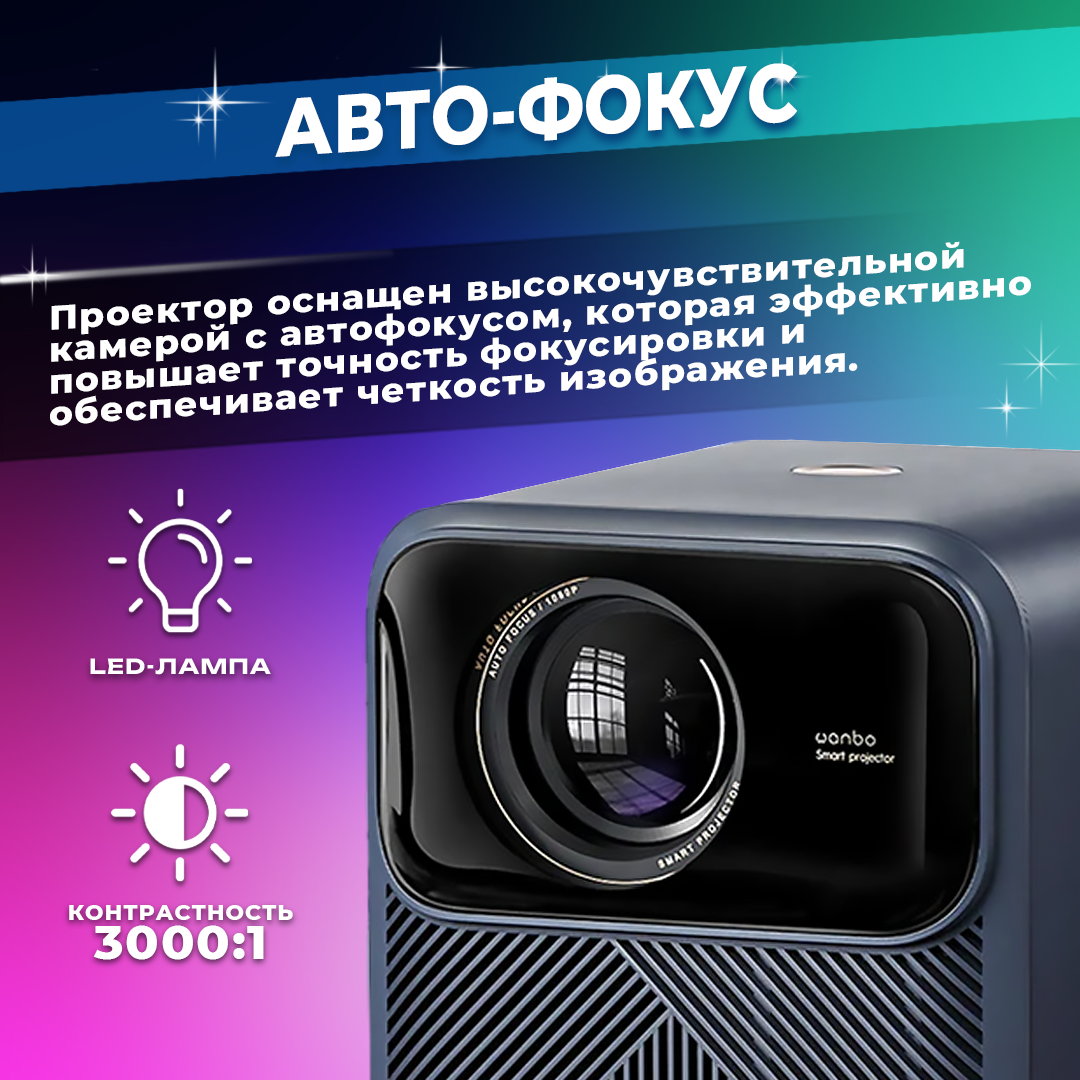 Мини проектор 4К с высоким разрешением 1920х1080 для фильмов и мультфильмов