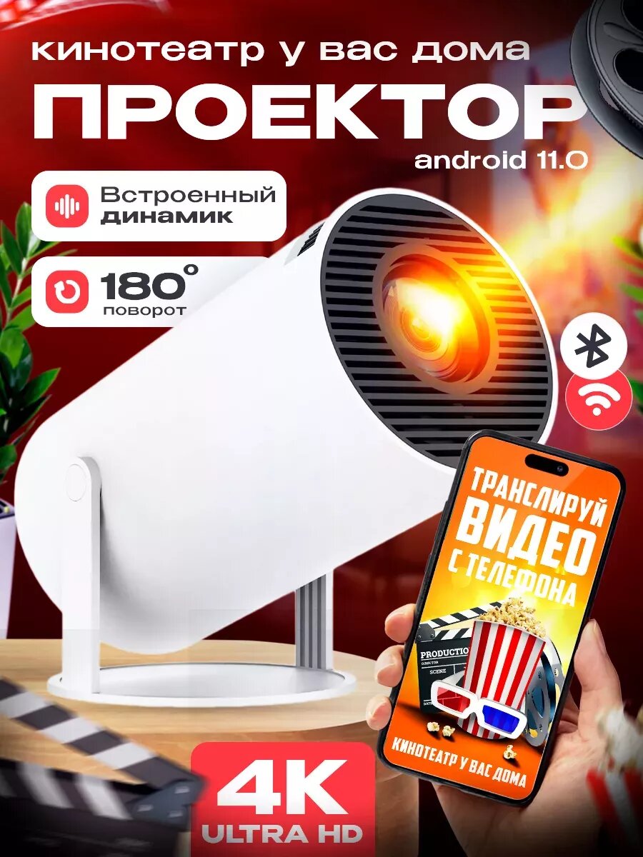 Мини проектор 4К с высоким разрешением 1920х1080 для фильмов и мультфильмов