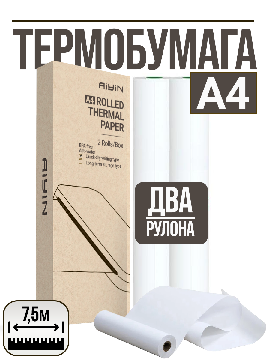 Термобумага для термопринтера A4 (2 рулона по 7.5 метра) информация: