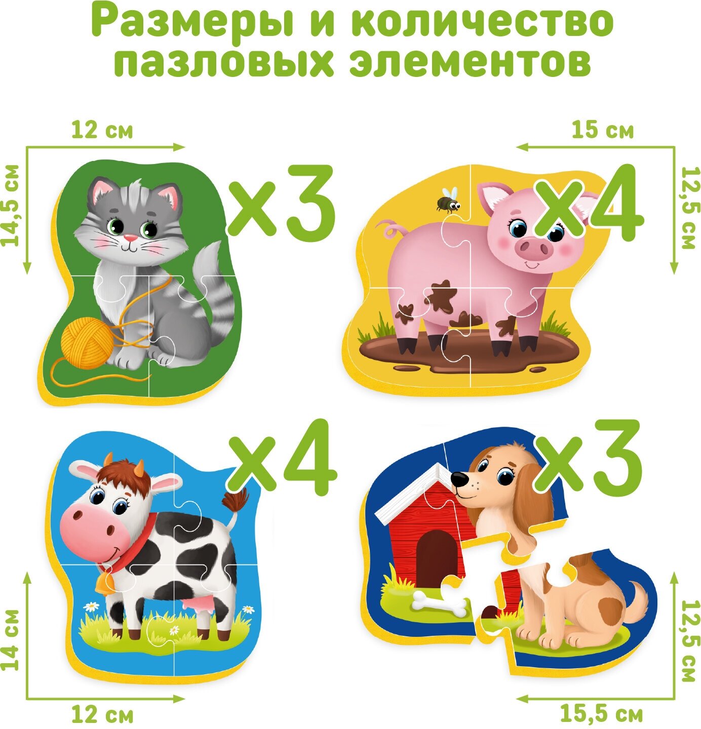 Пазлы для малышей "Овощи", 4 картинки, 13 элементов